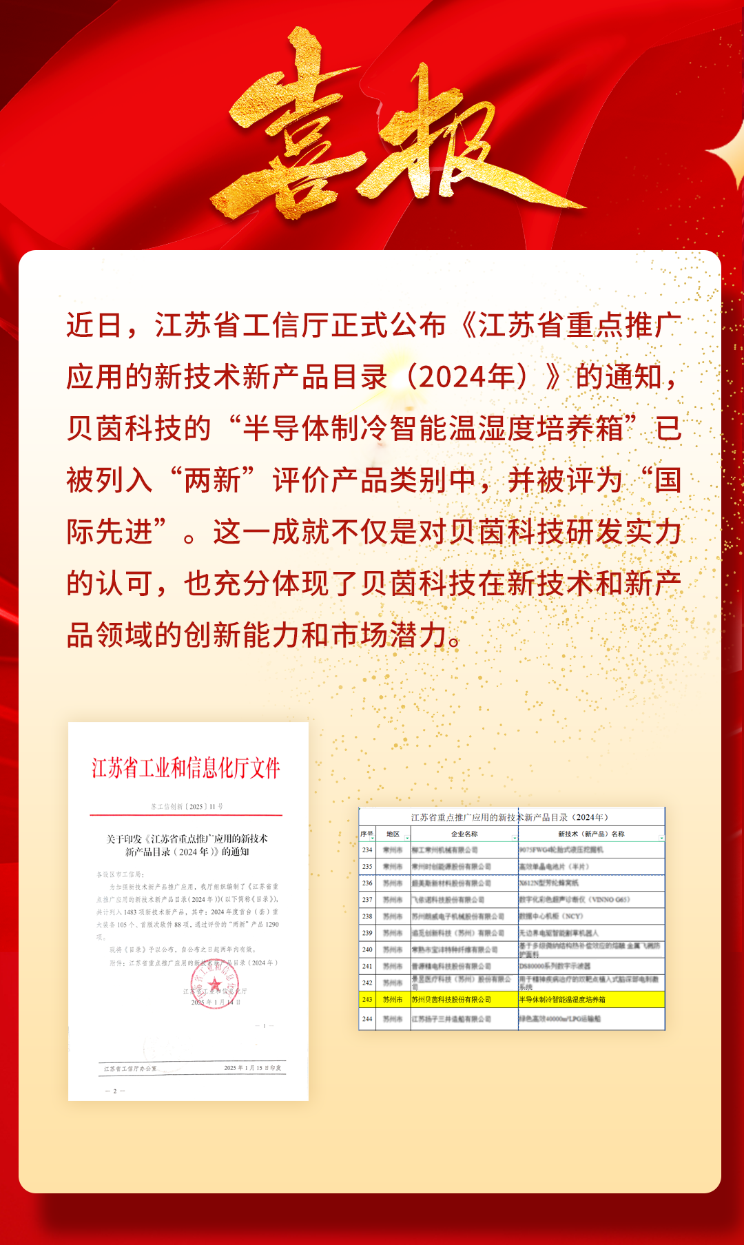 【公司新聞】祝賀貝茵科技“半導(dǎo)體制冷智能溫濕度培養(yǎng)箱”列入“兩新”“國際先進(jìn)”