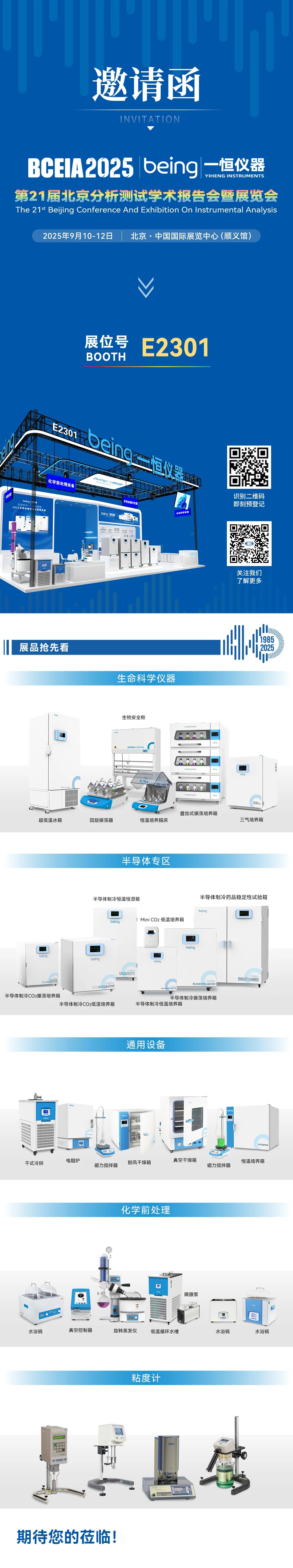 2025-09-08 | 文章來源: | 點擊率: 第二十一屆北京分析測試學術(shù)報告會暨展覽會(BCEIA2025)將于2025年9月10-12日在北京中國國際展覽中心(順義館)舉辦。(BCEIA始創(chuàng)于1985年,每兩年舉辦一次,已連續(xù)成功舉辦了二十屆)作為生命科學領(lǐng)域溫濕度控制解決方案的專業(yè)供應(yīng)商,一恒儀器將在現(xiàn)場展示系列“硬核”產(chǎn)品,與業(yè)界同仁共探行業(yè)未來趨勢。